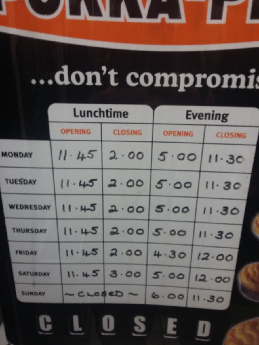| Sunday | Closed |